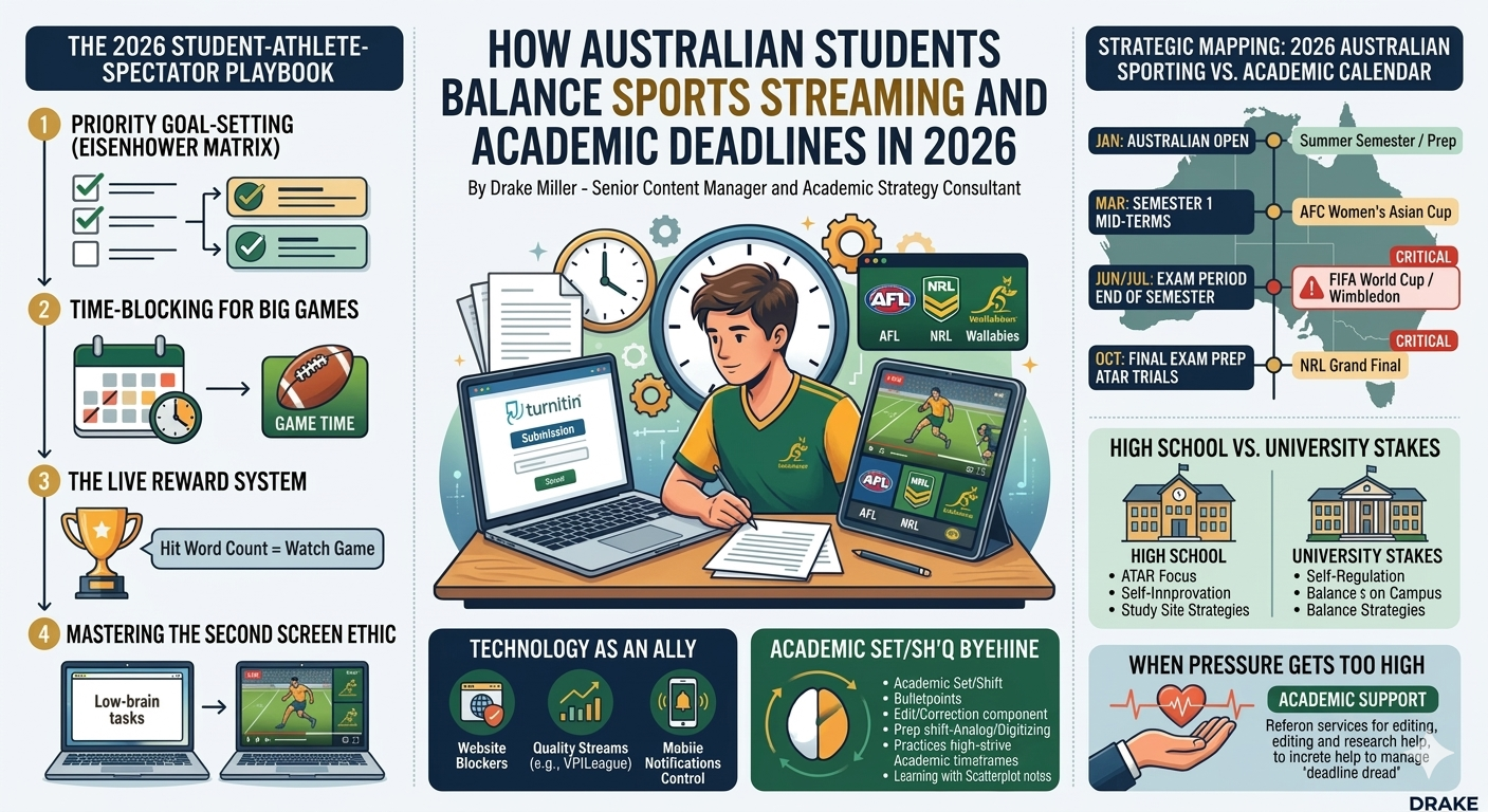 Australia’s unique sporting culture—spanning from the NRL and AFL to global icons like Formula 1 and the NBA—creates a digital tug-of-war. How do you maintain a High Distinction average when the “game of the century” is happening right in the middle of your study session? This guide explores the art of the “student-athlete-spectator” balance, offering a strategic playbook for high school and university students to manage their screens without sacrificing their GPAs.